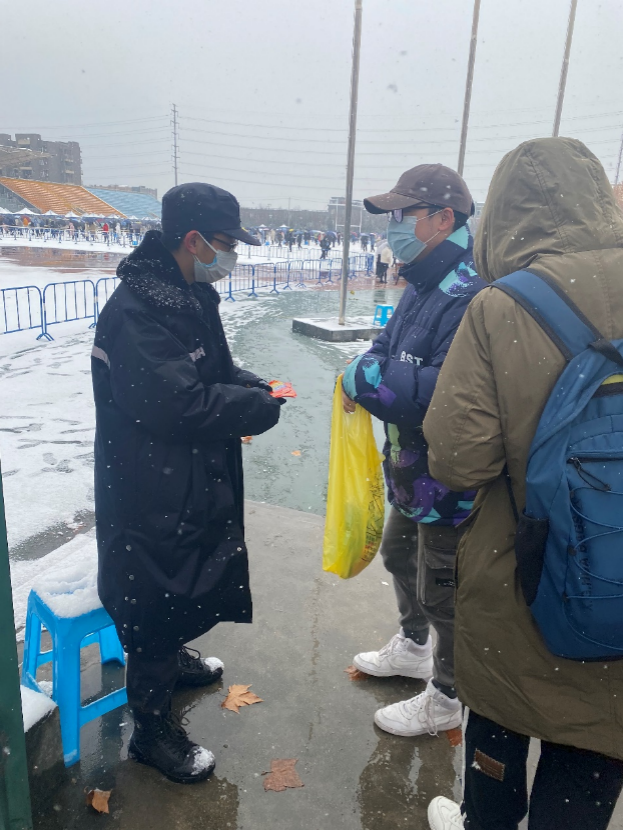 疫情期间,医护人员和工作人员为防疫做出了重大贡献。为了表达计算机学子对他们的感谢,awc777万象城娱乐官网19级学生党支部组成志愿者团队,为在风雪中坚守岗位的志愿者、医护人员以及工作人员送上御寒物资。以一颗颗感恩的心感谢全体捍卫校园安全的医护人员和全体工作人员。在大雪纷飞之中给西工大校园再次添加了一些温暖。相信在众人共同努力之下,我们一定会安全地度过这个寒冬。