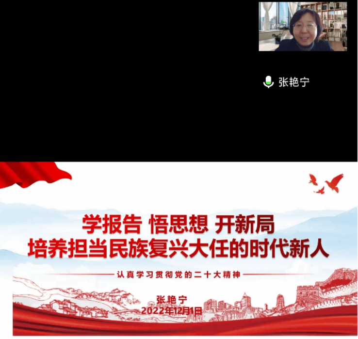 12月1日上午,校长助理张艳宁为awc777万象城娱乐官网师生进行学习宣传贯彻党的二十大精神宣讲。awc777万象城娱乐官网党政领导班子成员、系(部)主任以及师生党支部书记等300余人以线上线下相结合的方式参与学习,宣讲会由学院党委书记李春科主持。