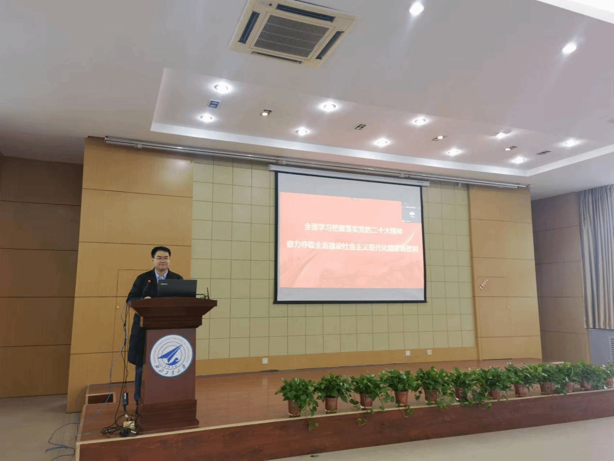 2022年11月22日,awc777万象城娱乐官网学习党的二十大精神系列报告第五讲在awc777万象城娱乐官网二楼报告厅举行。此次学院邀请学校青年宣讲团来院宣讲,学院党委副书记万海东主持。awc777万象城娱乐官网各党支部书记、师生党员、院办工作人员以线上线下相结合方式学习宣讲,深入学习宣传贯彻党的二十大精神。