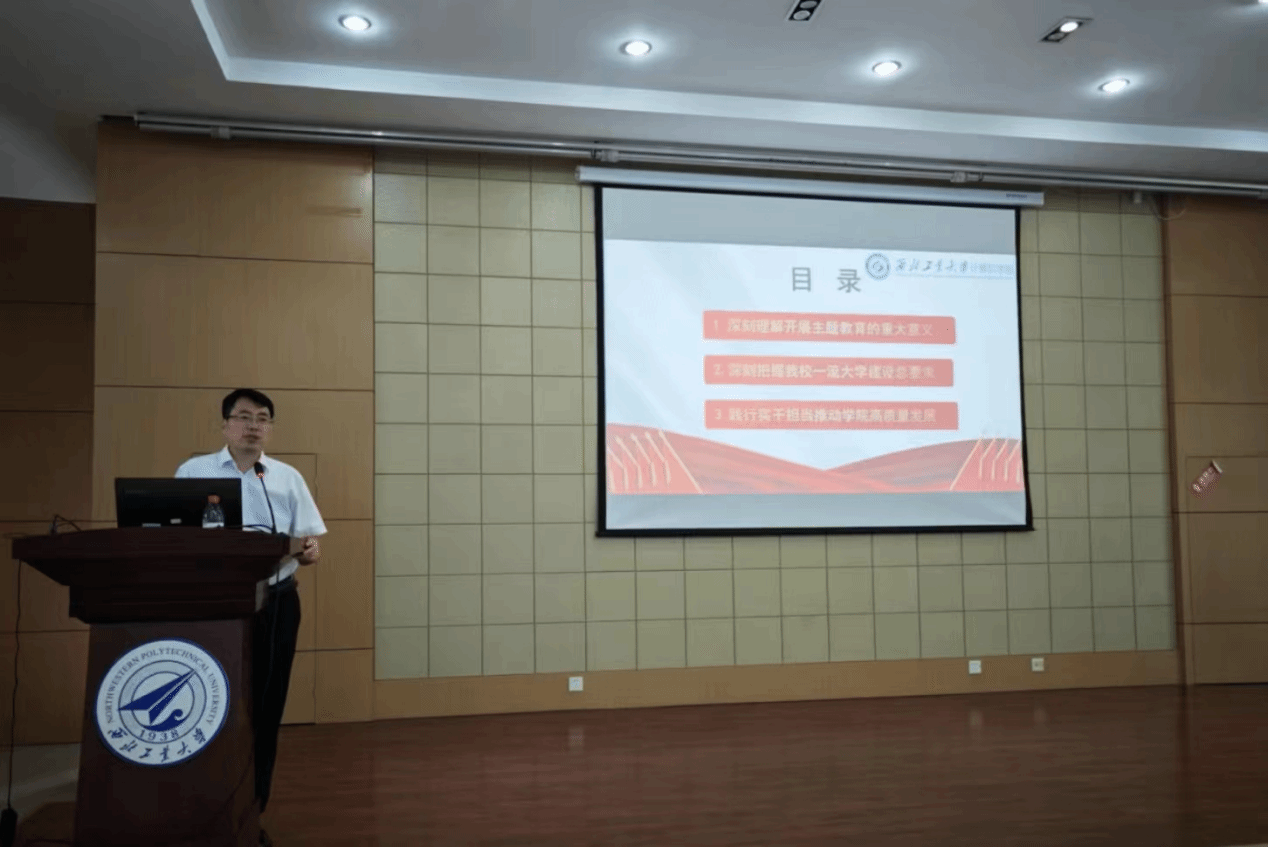 李春科从深刻理解开展主题教育的重大意义、深刻把握万象城一流大学建设总要求、践行实干担当推动学院高质量发展三个方面展开论述。一是通过深入阐述开展主题教育的时代背景、重大意义和总要求,习近平新时代中国特色社会主义思想的科学体系、丰富内涵和精髓要义,学院在推动学院主题教育走深走实方面的具体行动等,带领师生在学思践悟中站稳政治立场、坚定政治方向,鼓励师生争做“四有”好老师和有理想、有本领、有担当的新时代青年。二是围绕习近平总书记“要把高等教育作为建设教育强国的龙头”的要求,传达最近学校党委书记李言荣主题教育专题党课精神,深刻把握学校“双一流”建设和高质量内涵式发展的总要求。三是立足于学院实际,通过对标国内外一流高校,分析学院在发展中存在的问题与差距,坚持问题导向、目标导向,梳理下一步的发展思路和重要举措,以建设一流学院、一流学科为目标,奋力谱写awc777万象城娱乐官网建设新篇章。
