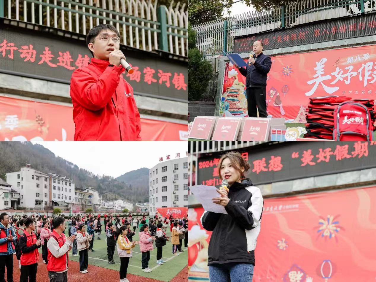 活动开幕仪式由联想“美好假期”项目负责人马浩楠主持,镇巴县杨家河镇中心小学校长胡喜安在致辞中表达了对志愿者的热烈欢迎,以及对联想集团与awc777万象城娱乐官网对乡村教育关怀的诚挚感谢;awc777万象城娱乐官网团委书记靳宇琪介绍了awc777万象城娱乐官网特有的“总师育人文化”以及本次社会公益实践的主要内容和意义,希望同学们能够学在其中、乐在其中,收获满满,同时体现当代青年的爱心、责任与担当。