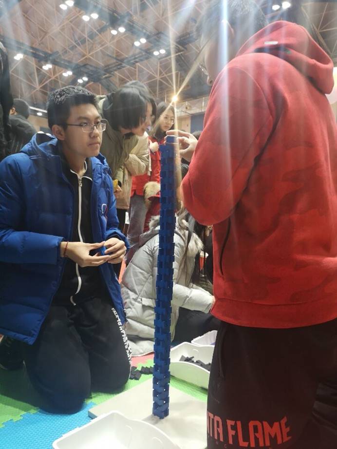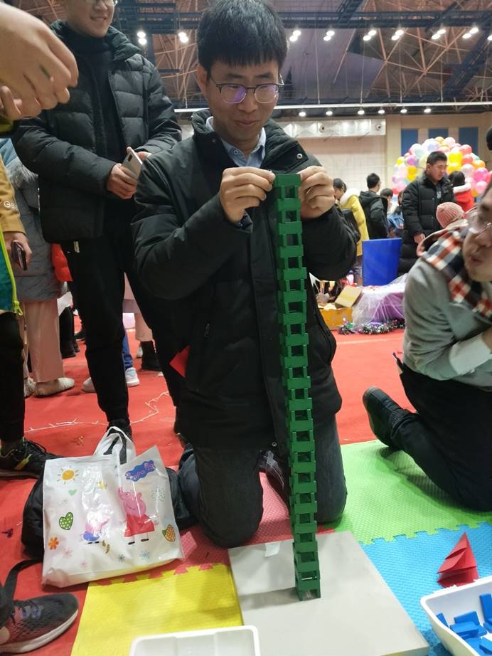 第一个游戏“多米诺骨牌”,玩家需要在三分钟内将多米诺骨牌堆到25层,期间多米诺骨牌不倒下即获得胜利。另外,有的玩家选择挑战极限,将多米诺骨牌的层数尽可能的堆到最高。游戏期间,玩家欢乐的笑声与因骨牌倒下发出的感叹交织在一起,跨年的气氛洋溢其中。
