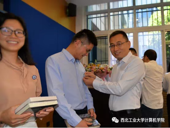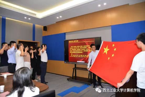 颁奖仪式前,学院组织新入职教师开展教师宣誓活动,20位新入职教师,在学院党委书记李春科的带领下,面向国旗,庄严宣誓。院长於志文代表学院为新教师佩戴院徽、并赠书。