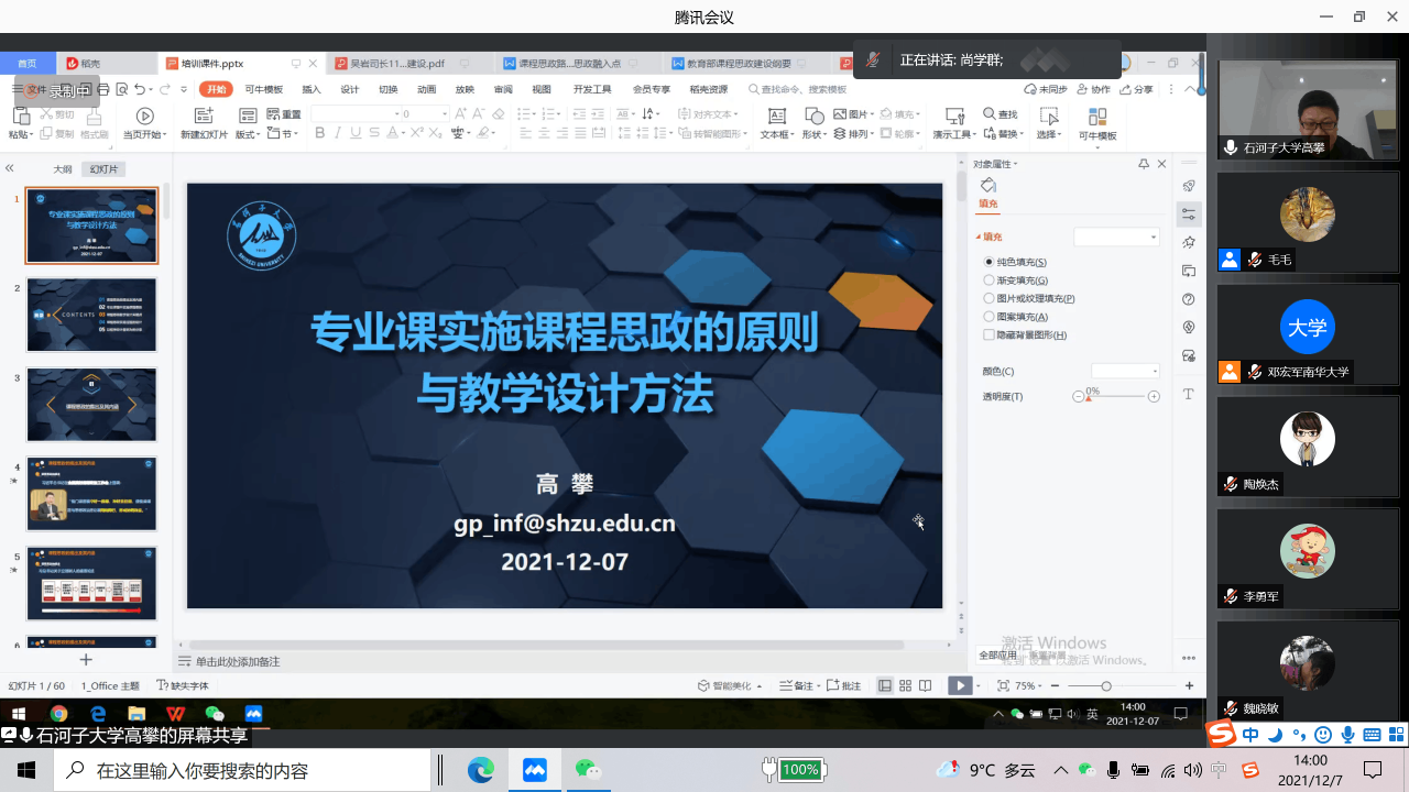 首先,高攀教授介绍了课程思政的提出背景和内涵意义。重点阐述了课程思政的教学原则和教学方法。