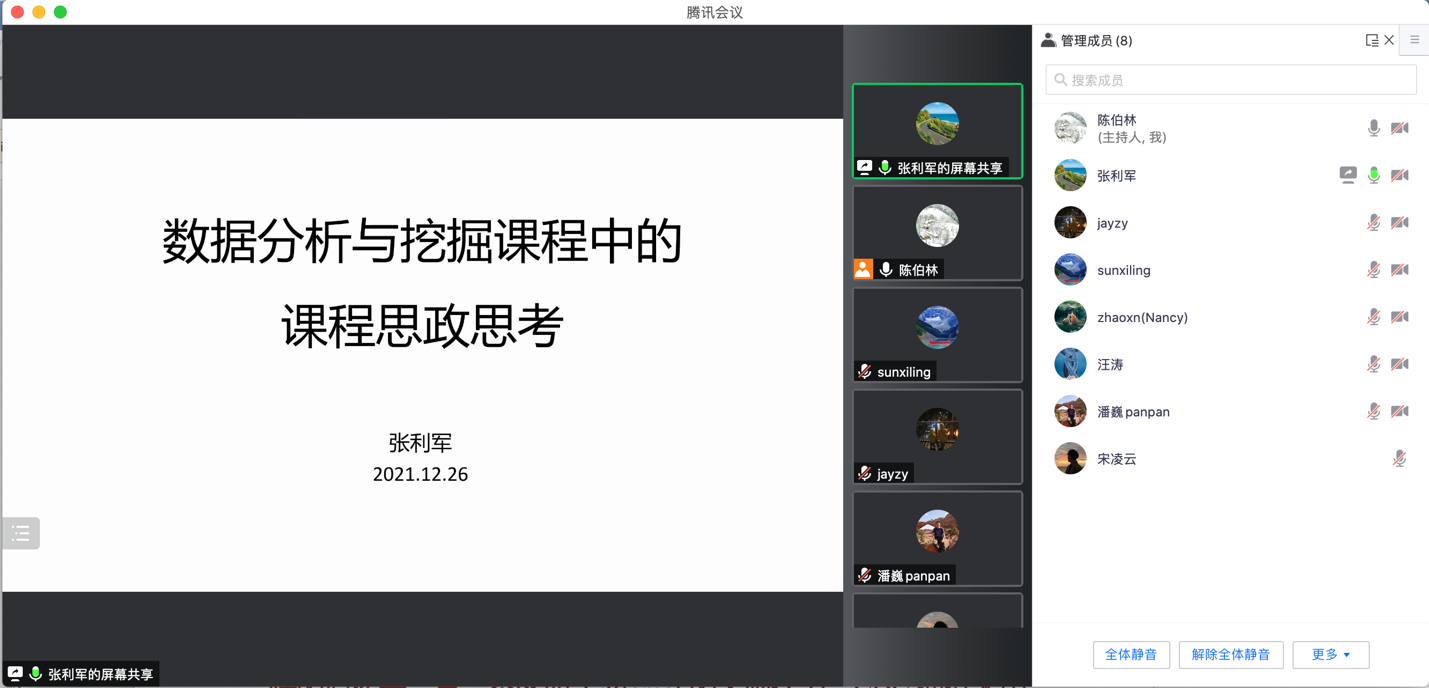 2021年12月26日晚,为持续贯彻教育部《高等学校课程思政建设指导纲要》精神,awc777万象城娱乐官网计算机科学与软件系召开“课程思政建设实施方案”第二轮学习研讨会议,系统梳理了《数据科学的数学方法》、《数据分析与挖掘》、《信息存储与管理》这三门课的课程思政建设工作,会议由系支部书记陈伯林主持,数据科学与大数据专业核心课与基础课教师参加了会议。