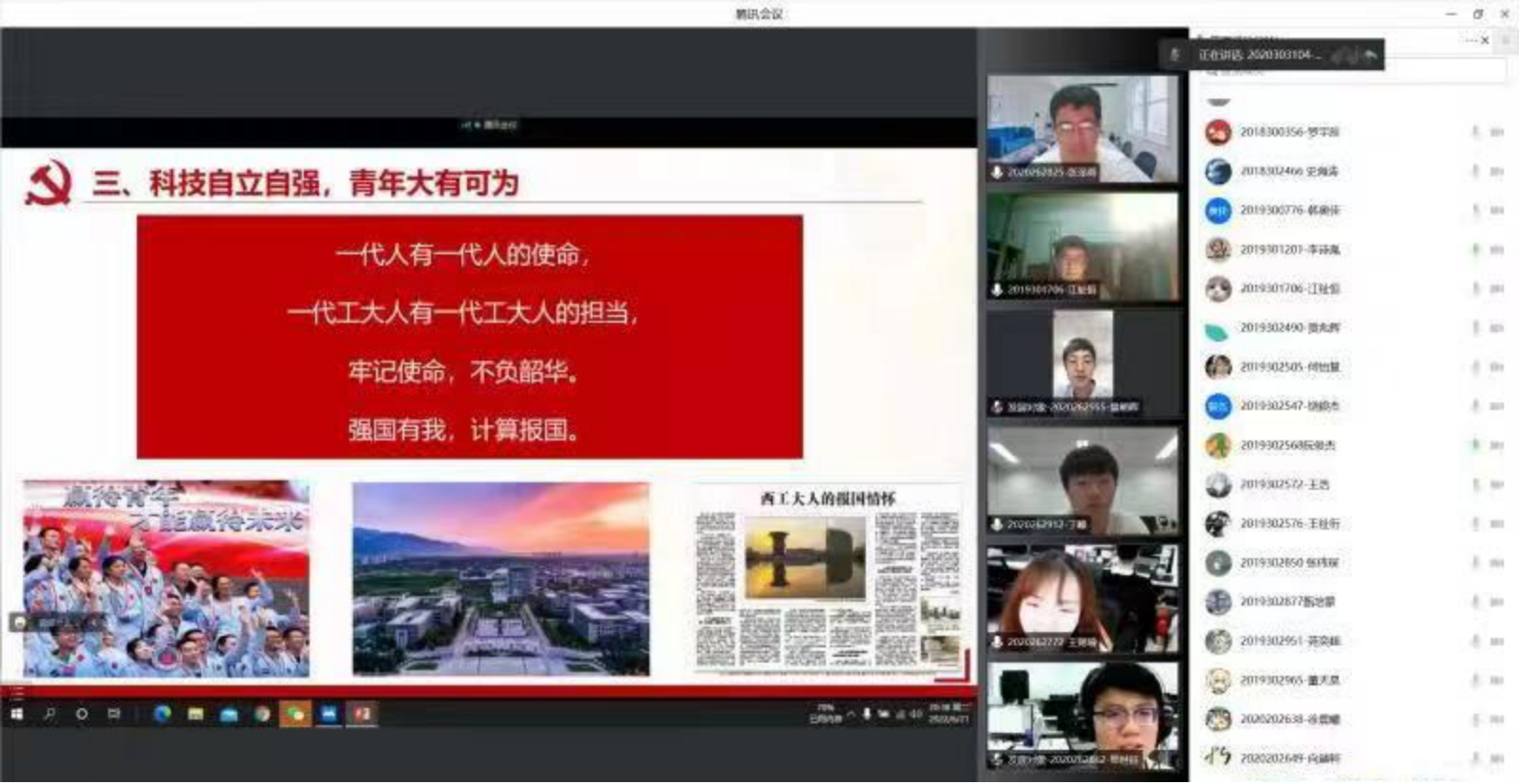 6月21日晚,awc777万象城娱乐官网党委书记李春科通过腾讯会议为学院111余名发展对象讲授“百年未有大变局 强国有我新青年“专题党课,引导同学们要心怀“国之大者”,争当栋梁之才。