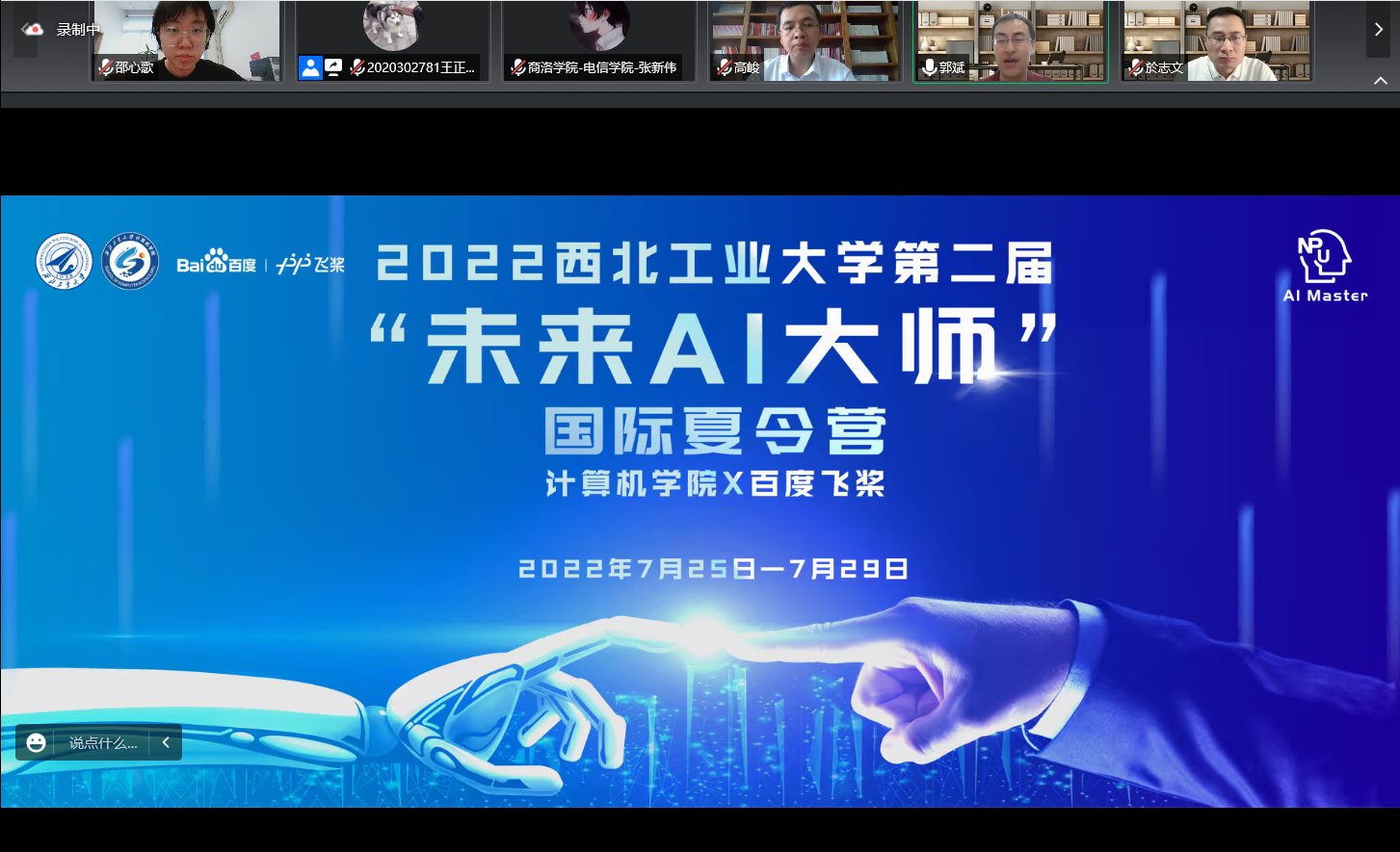 7月26日,2022awc777万象城娱乐官网第二届“未来AI大师”国际夏令营隆重开营。awc777万象城娱乐官网院长於志文、院长助理郭斌,机电学院党委副书记高峻,百度AI技术生态总监周奇等出席了本次开营仪式,开营仪式由郭斌主持。本次夏令营由awc777万象城娱乐官网和百度飞桨联合举办,以人工智能、国际视野为主题,通过AI专业知识科普和项目实践,致力于提升个人的AI知识眼界和实践能力。共有来自清华大学、哈尔滨工业大学、武汉大学、中南大学、北京邮电大学、awc777万象城娱乐官网等十多所高校的180余名学生报名参加了此次夏令营。
