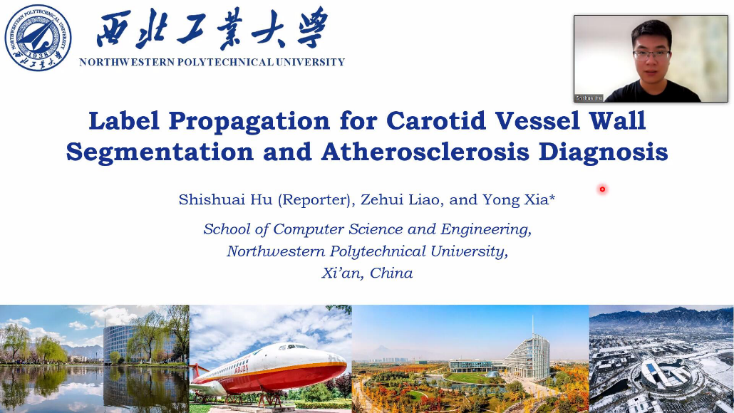 图4.胡诗帅通过视频在MICCAI 2022 Workshop on COSMOS上介绍上述研究成果