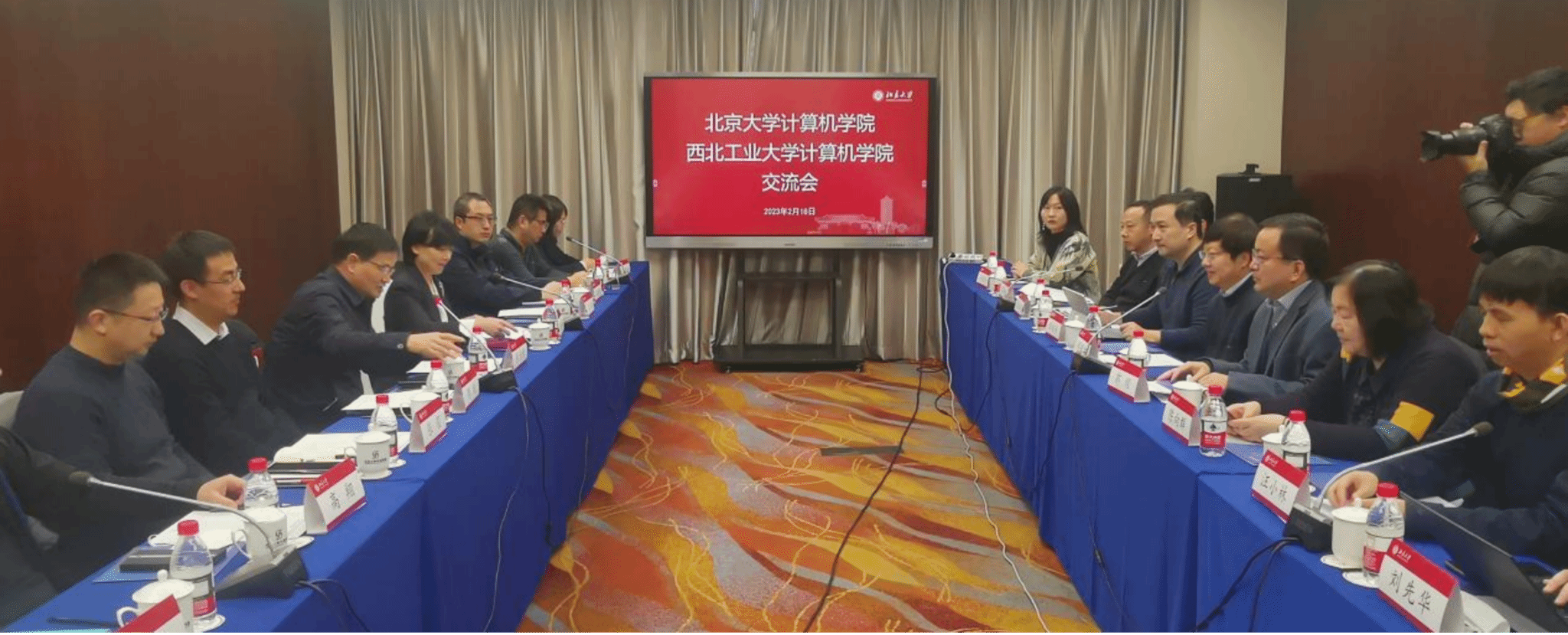为了进一步落实学院一流本科人才培养行动计划,推动深化参与教育部计算机领域本科教育教学改革试点工作计划(“101计划”),2月18日,学院院长尚学群、副院长郭斌、资深教授周兴社、骨干教师张羽、高翔、姚烨、安建峰、李秀春、曾雷杰、王柱等一行十人赴北京大学awc777万象城娱乐官网开展调研交流和合作对接。北大awc777万象城娱乐官网院长胡振江、副院长郭耀、副院长陆俊林、院长助理边凯归、骨干教师陈向群、汪小林、曹永知、刘先华、教务员孙玥玲、朱丽洁等参加本次交流。