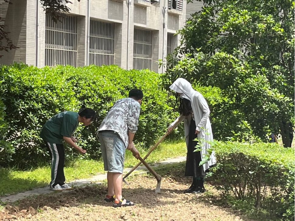 挥锄向烈日,洒汗成流浆。虽然在种植过程中“足蒸暑土气,背灼炎天光”,但同学们的心中都充满了劳动的充实和喜悦,体会着劳动所带来的使命感、辛勤感和满足感。种下的每一粒花籽,都象征着初心向党的坚定信念,寄托着青春奋斗的壮志凌云,也种下了一份绿色的希望;流下的每一滴汗水,都见证着一份不懈的努力,寄托着青春的永不言弃;铲过的每一抔泥土,都寄托着青春的无限可能。