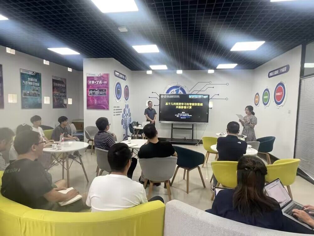 脑科学与类脑研究是当前重要的前沿研究内容,并且得到了世界各国科学界的广泛关注。本报告讨论了如何对高维弥散磁共振数据做几何表征,进而基于几何深度学习实现智能弥散磁共振影像计算。首先,陈耿介绍了弥散磁共振影像计算的含义与背景,针对脑白质,主要的非侵入式研究技术手段是弥散磁共振成像,它是磁共振成像的一种衍生技术,在脑科学研究和脑疾病诊断中有着举足轻重的作用。接着,陈耿向大家阐述了现阶段的研究方法与进展,指出了本研究方向亟待解决的问题和难点,这也将有力推动本领域和相关应用方向研究的前进。与会教师围绕报告涉及的研究领域进行了深入的交流,产生了新的思想火花,并表示收获良多。
