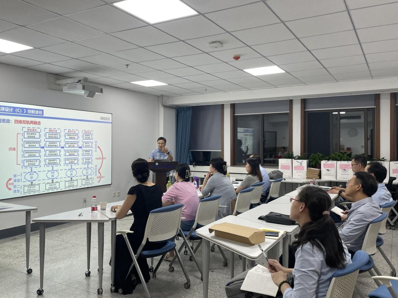 2007年,周果清从辅导员岗转到基础教学与实验中心担任专职教师,负责计算机公共课的教学工作,他始终牢记为党育人、为国育才的初心使命,践行“立德树人”,用做科研的方法做教学。针对传统程序课程存在的痛点问题,提出课赛融合的“学、探、练、创”四位一体线上线下混合式教学模式,实施了课前MOOC学语法、课堂探究讲思维,课后编程练能力、竞赛实践求创新等一系列改革举措。同时,提出“四维双轨两融合”的课程思政建设新模式,引导学生将党的创新理论入脑入心。