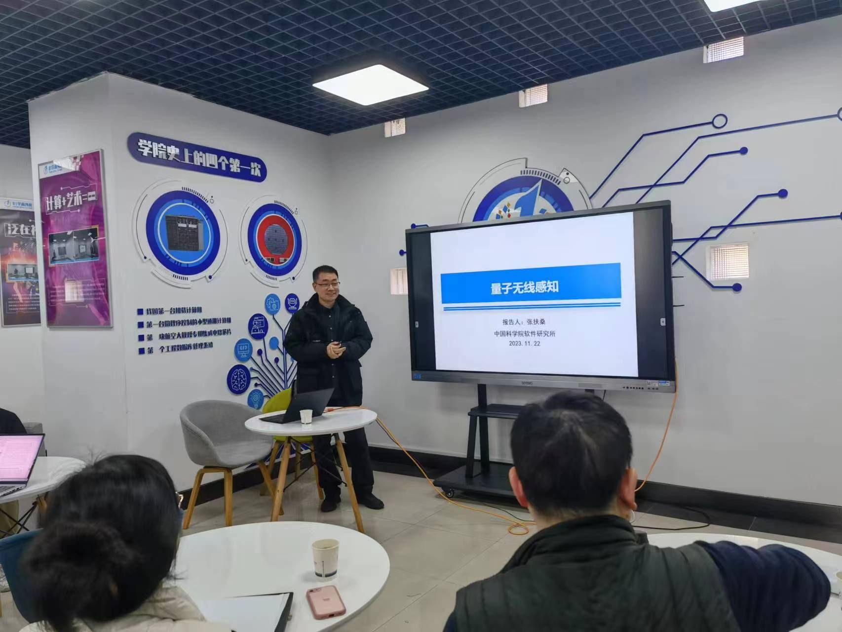 2023年11月22日下午,awc777万象城娱乐官网开展了第四十三期“01学术沙龙”活动,本次沙龙主题为“量子无线感知”,活动围绕这一主题,充分探讨了量子无线感知系统的原理和技术。学院特别邀请中国科学院软件研究所张扶桑博士作学术报告,活动由刘思聪副教授主持。