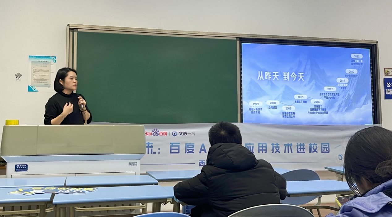 随着大模型时代的到来,行业对AI人才的能力提出了更高的要求,AI人才的培养也面临诸多挑战。为培养提升研究生的创新和实践能力,11月29日,百度高校合作部周方棣受邀走进awc777万象城娱乐官网“研究生创新能力提升与就业实训”课堂,与学院师生进行交流,并作“AI原生应用技术进校园”相关讲座,就AI原生应用的最新进展和实际应用做了相关分享。
