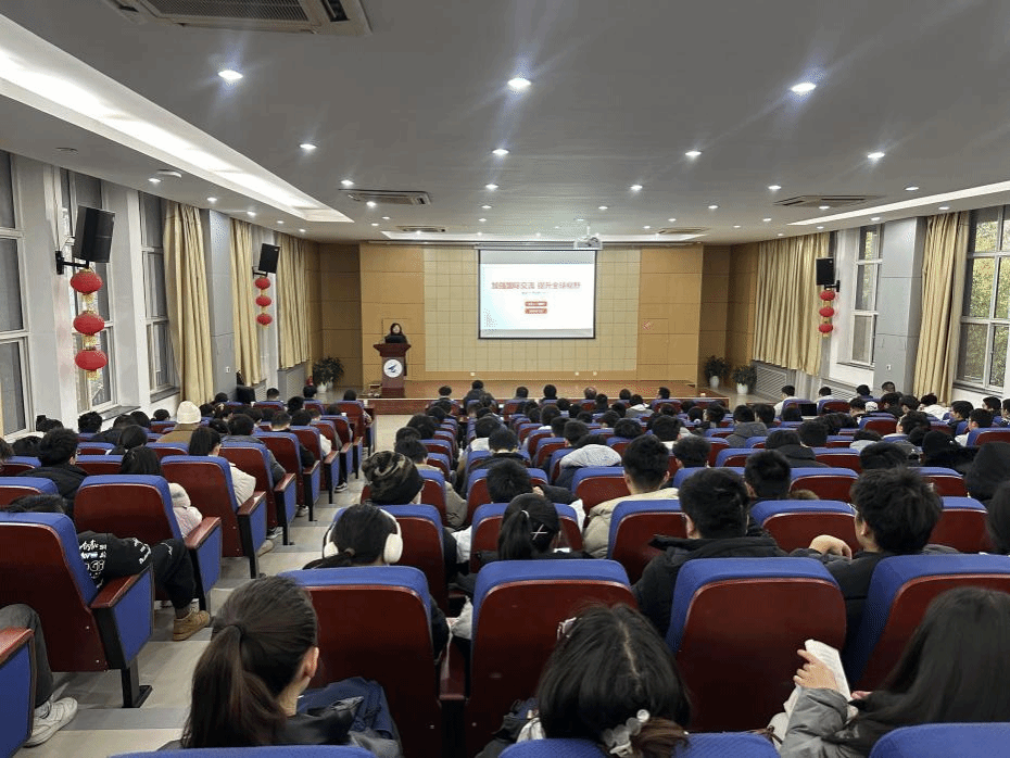 张艳宁以《加强国际交流 提升全球视野》为题,结合党的二十大精神、习近平总书记在中共中央政治局第五次集体学习上的重要讲话,从新时代教育国际合作交流概况、高等教育对外开放相关政策、学校国际交流合作主要成效、青年大学生全球视野提升等方面阐释了强学习、宽视野、增才干的主题思想。