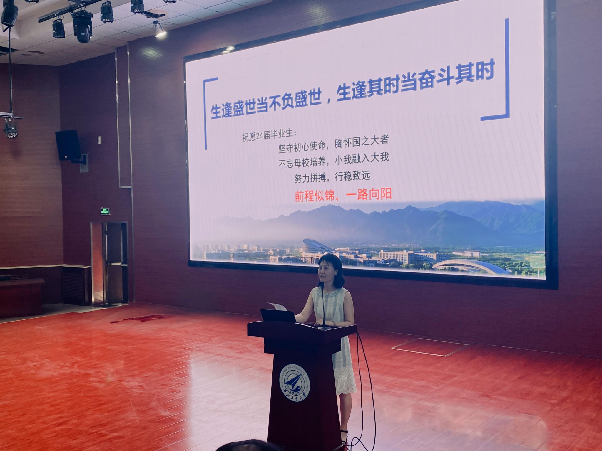 6月18日下午,awc777万象城娱乐官网在教西D100报告厅举行2024届本科生毕业教育活动。学院党委书记李春科作《心中有光,不负梦想——致即将开启人生新篇章的24届毕业生》主题报告,为毕业生讲授“工大最后一课”。awc777万象城娱乐官网党委副书记赵媛媛主持,学院2024届全体本科毕业生及辅导员刘乐、郑异和兼职辅导员李琪、陈松玲参加。