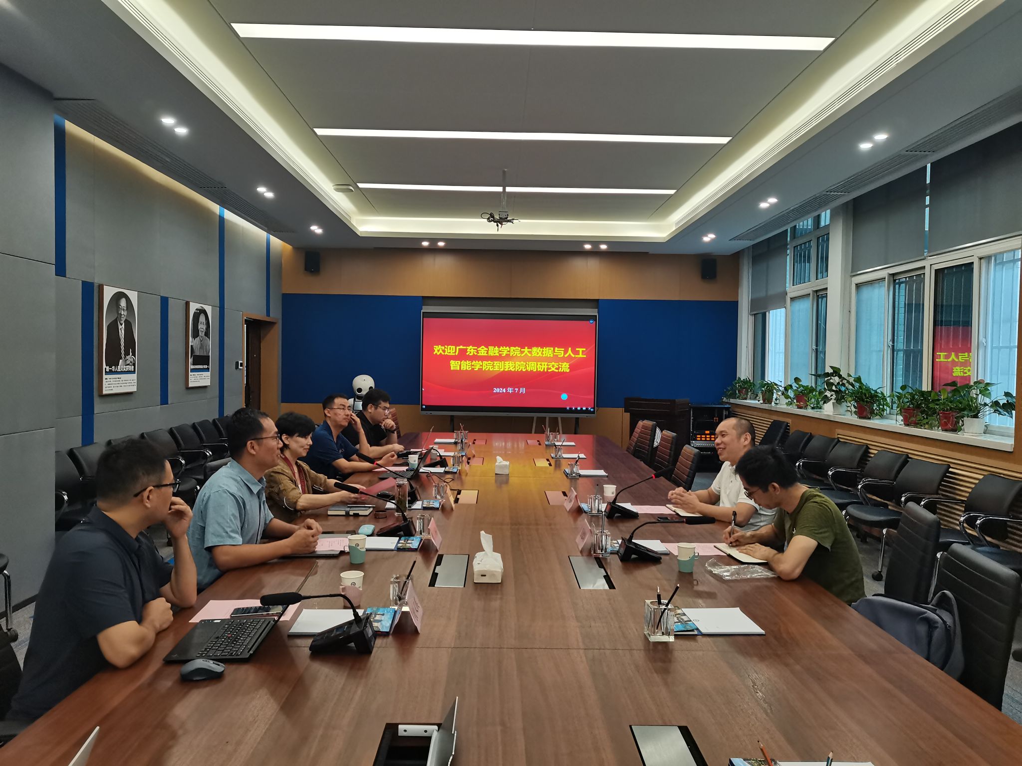 尚学群首先对广东金融学院大数据与人工智能学院一行来访表示热烈欢迎。郭斌详细介绍了学院发展历程、学科建设、人才培养、科学研究等方面情况。廖文辉介绍了此次调研交流的目的、学院建设现状及有关情况。