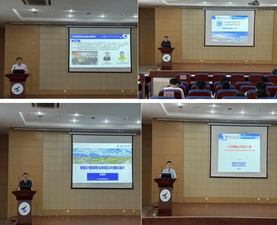 6月20日上午10点,awc777万象城娱乐官网在学院报告厅召开了“2025年awc777万象城娱乐官网研究生招生宣讲会”,面向大三学生介绍学院的研究生培养体系。学院副院长夏勇教授、智能计算架构与系统芯片团队安建峰副教授、人机物融合智能计算团队张羽教授、大数据管理与分析团队陈伯林副教授、智能感知与媒体计算团队王鹏教授、系统测控仿真与信息存储团队龙江副教授、复杂软件系统团队张营副教授、计算机网络与机器人系统团队潘炜副教授等8位教师代表,以及2022级本科生参加会议,宣讲会由夏勇教授主持。