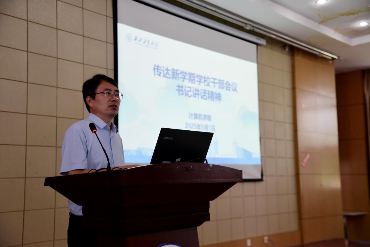 院长尚学群传达了学校暑假务虚会和新学期干部会议精神,带领大家集体学习了宋保维校长《优化学科专业布局 推动“总师型”人才培养》、李言荣书记《关于万象城“十五五”规划中的几个问题》两个报告的主要内容,并回顾总结了学院上年工作,布置安排了新学期学院的重点工作和任务。