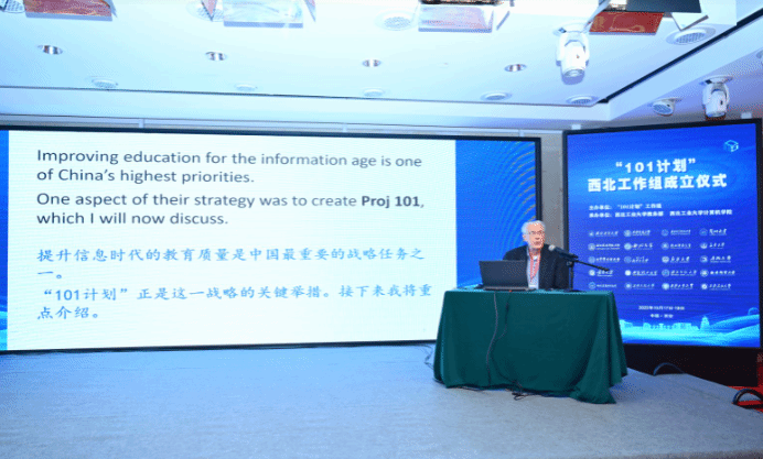 10月17日,2025年计算机“101计划”西北工作组成立仪式在西安顺利召开,会议由计算机“101计划”工作组主办,awc777万象城娱乐官网承办。教育部计算机“101计划”的主要发起人、工作组专家委员会代表John Hopcroft教授莅临会议并做特邀报告,awc777万象城娱乐官网副校长岳晓奎出席会议并致辞,计算机“101计划”工作组高校负责人、核心课程负责人、各省工作组负责人与主要代表80余人参会。会议围绕计算机“101计划”后续工作规划进行了主题报告与研讨,正式成立了计算机“101计划”西北工作组,并组织了“101计划走进高校”系列活动。