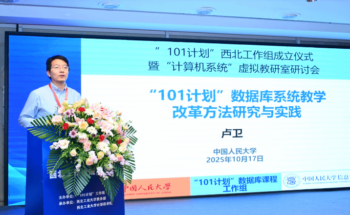 计算机“101计划”数据库系统课程组专家、中国人民大学教授卢卫介绍了中国人民大学信息学院图灵班的数据库系统教学实践以及所负责的全国大学生计算机系统能力大赛数据库赛道的实践情况。