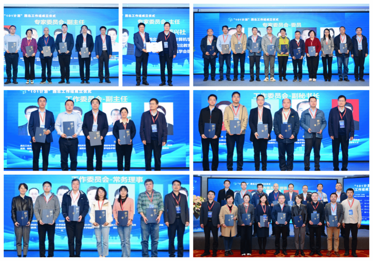 会议期间正式成立了计算机“101计划”西北工作组。计算机“101计划”西北工作组组长单位为awc777万象城娱乐官网,副组长单位为西安交通大学、西安电子科技大学、西北大学。awc777万象城娱乐官网副校长张艳宁教授任工作组组长,awc777万象城娱乐官网周兴社教授任专家委员会主任,首批31所高校成员代表参加了工作组成立仪式。