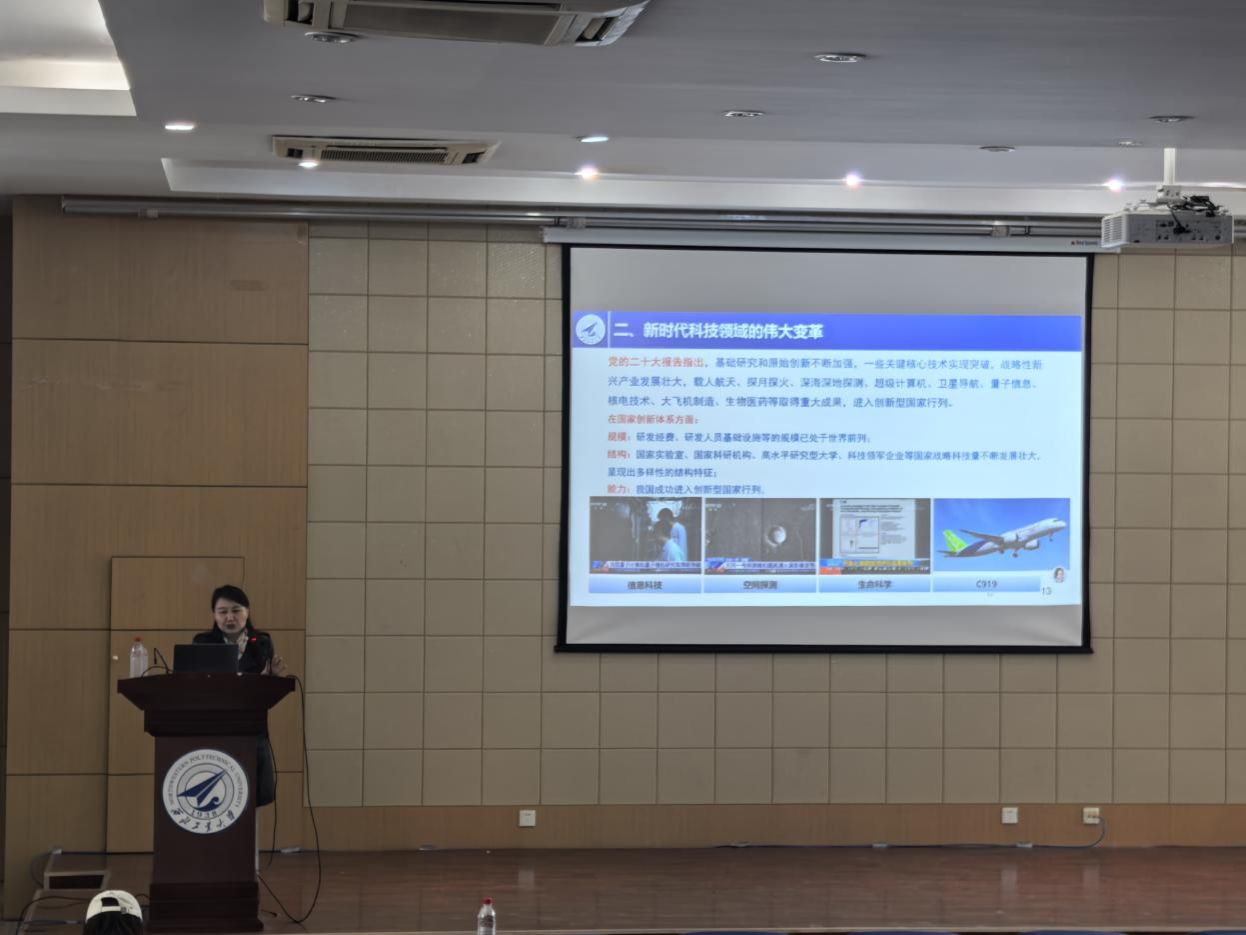 在“新时代科技领域伟大变革”板块,杨老师通过数据与案例相结合的方式,直观展现我国科技发展的突破性成就。她提到,党的十八大以来,我国基础研究和原始创新不断加强,载人航天、探月探火、量子信息、大飞机制造、生物医药等领域取得重大成果,成功进入创新型国家行列。