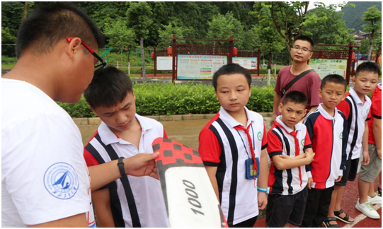 8月7日上午,四系支部师生代表走进融水苗族自治县苗家小镇小学,为当地小学生做机器人科普宣讲和航模飞行表演。