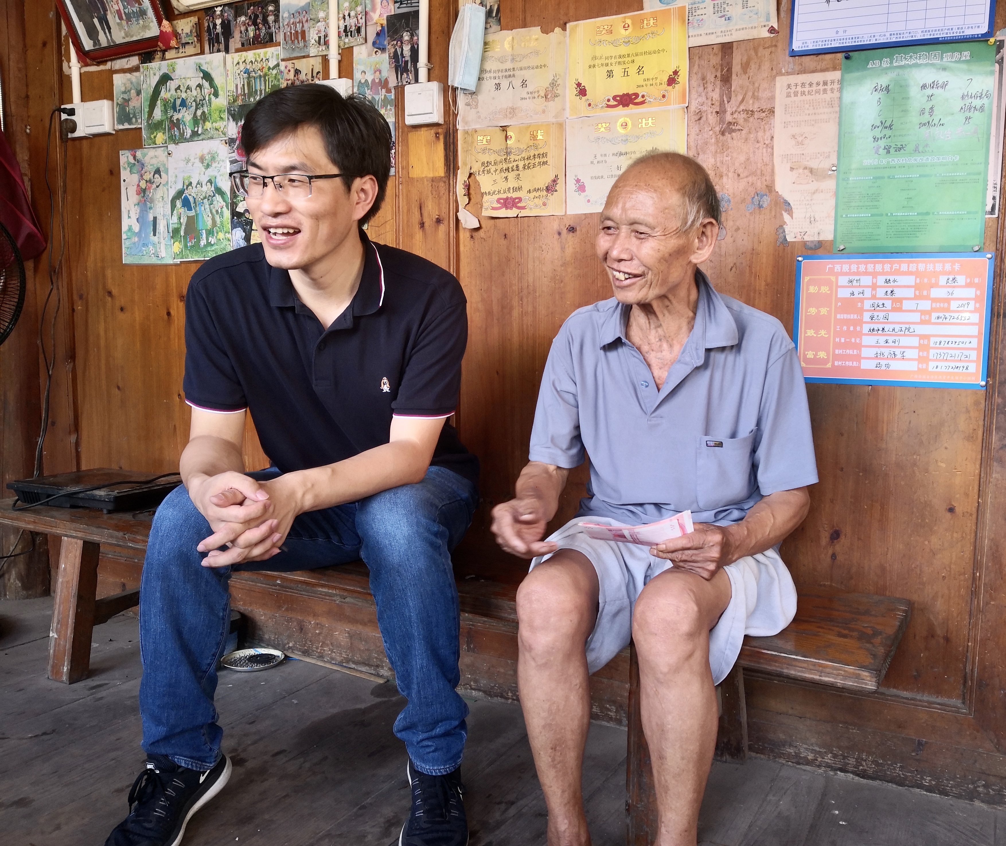 座谈会期间实践队员与培洞村党总支部领导老师进行了广泛讨论和深入交流。培洞村村支书贾金学首先对awc777万象城娱乐官网赴融水实践队的到来表示欢迎,并详细介绍了培洞村的扶贫工作情况:从近几年脱贫人数,低保人数,医保建卡人数,残疾人证的人数,外出务工人数,到人均年收入的变化,贾金学以人为本,从方方面面介绍了脱贫攻坚工作取得的显著成效,但是教育资源仍然相当匮乏,村民们的教育观念也是非常滞后,大约有百分之五十的学生都完成不了九年义务教育。