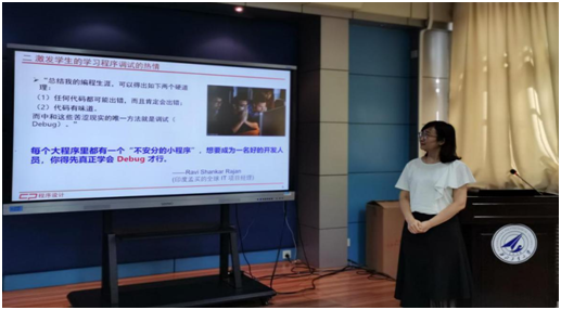 参赛教师段俊花通过引用“debug”这个计算机专用行话的由来,娓娓道来一位计算机女科学家对待工作严谨认真的态度,激发学生学习程序调试的热情。参赛教师王雪通过引入领域专家的成长之路、中国计算机的发展历程,将思政元素认识论、方法论、批判性思维和创新思维贯穿课程始终。