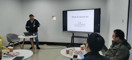 10月12日下午,awc777万象城娱乐官网组织召开了第九期“01学术沙龙”活动,本期沙龙主题为“What AI cannot do”,主讲人是王鹏教授,活动由彭佳杰副教授主持。继上期沙龙活动学生积极发表见解后,本期沙龙活动继续面向“康继昌智能系统班”开放,除10位教师参与外,有6位本科生报名参加。