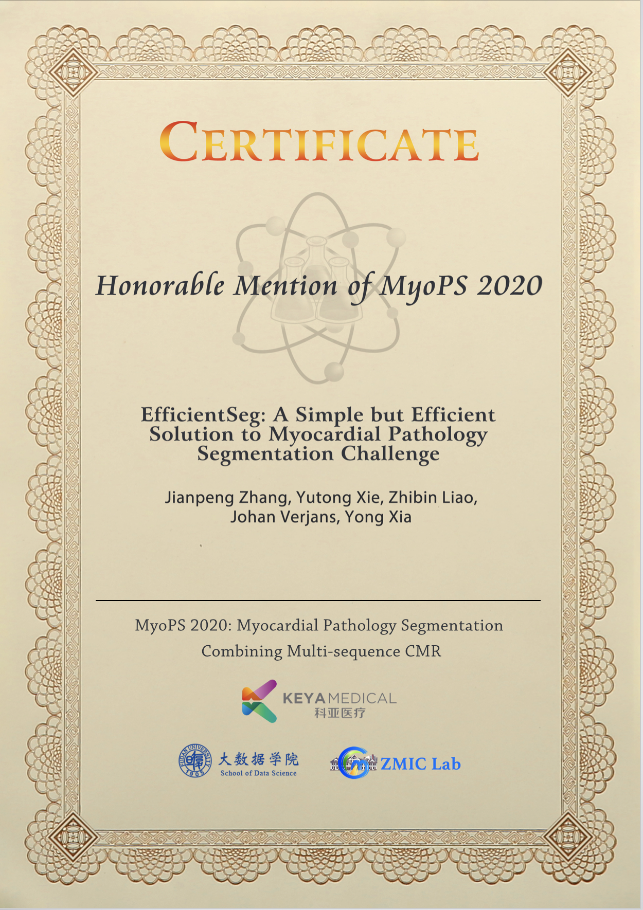 图2. MICCAI MyoPS 2020竞赛获奖证书