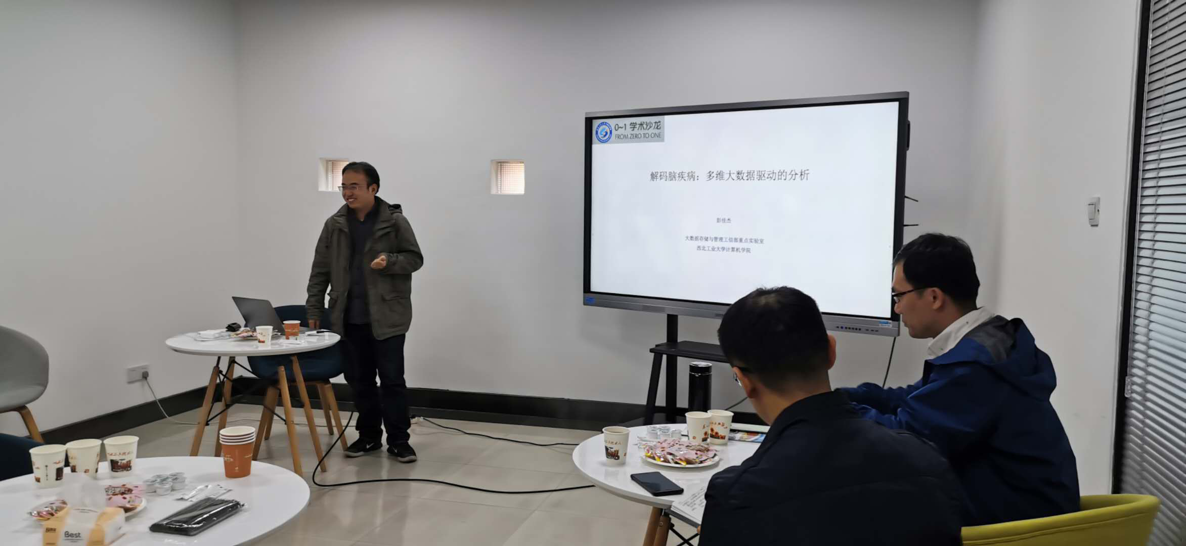 10月26日下午,awc777万象城娱乐官网组织召开了第十期“01学术沙龙”活动。彭佳杰副教授做了题为“解码脑疾病:多维大数据驱动的分析”的主题报告,参加活动的师生围绕这一主题进行了交流讨论。活动由陈伯林副教授主持,共计18名师生参与。