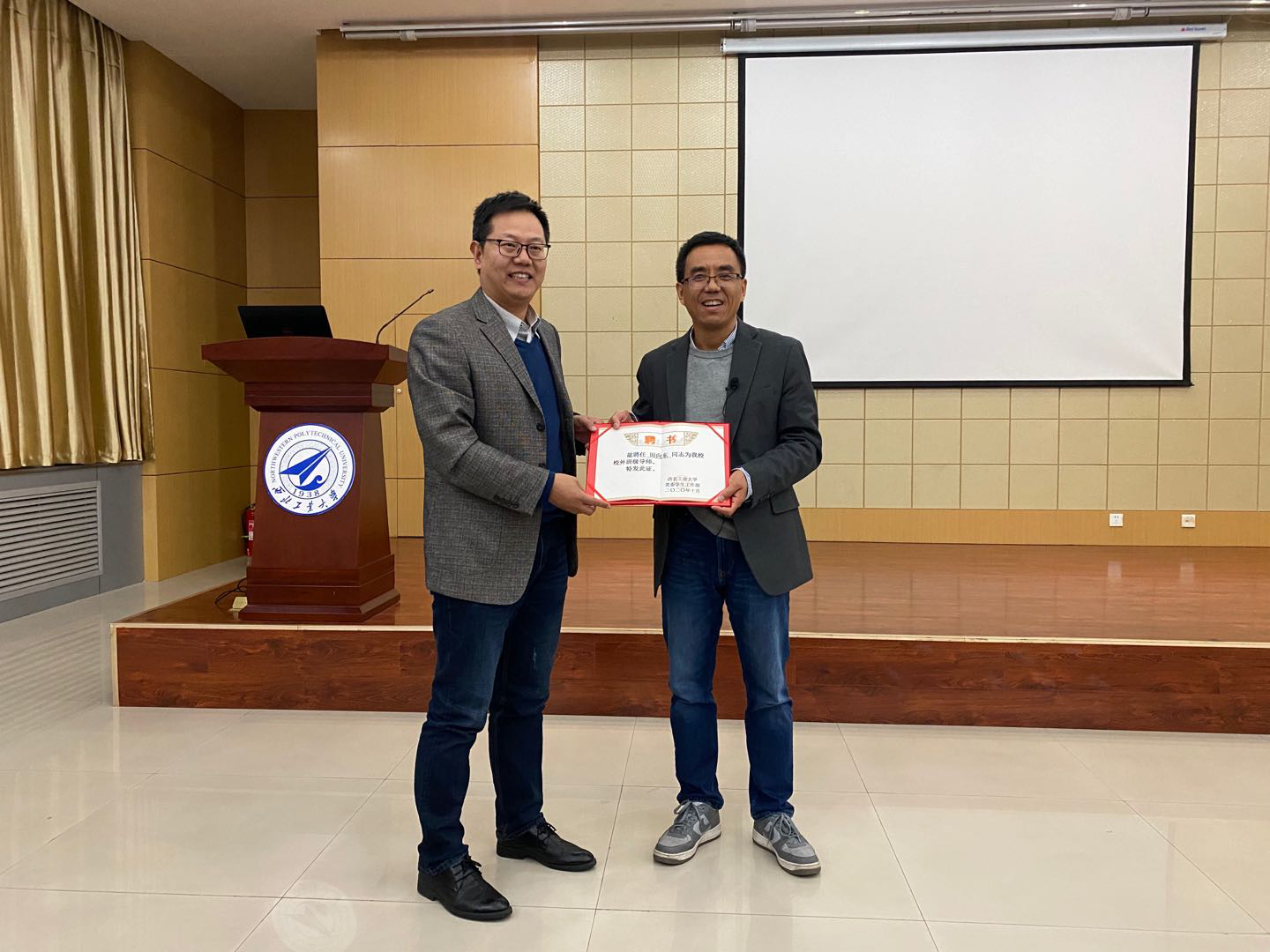 为了贯彻落实学校立德树人根本任务,实现培养具有家国情怀,追求卓越、引领未来的领军人才的新时期人才培养目标,万海东代表学校向田向东颁发了聘书,聘请其为2020级校外班级导师,通过校企合作达到共同育人目标。