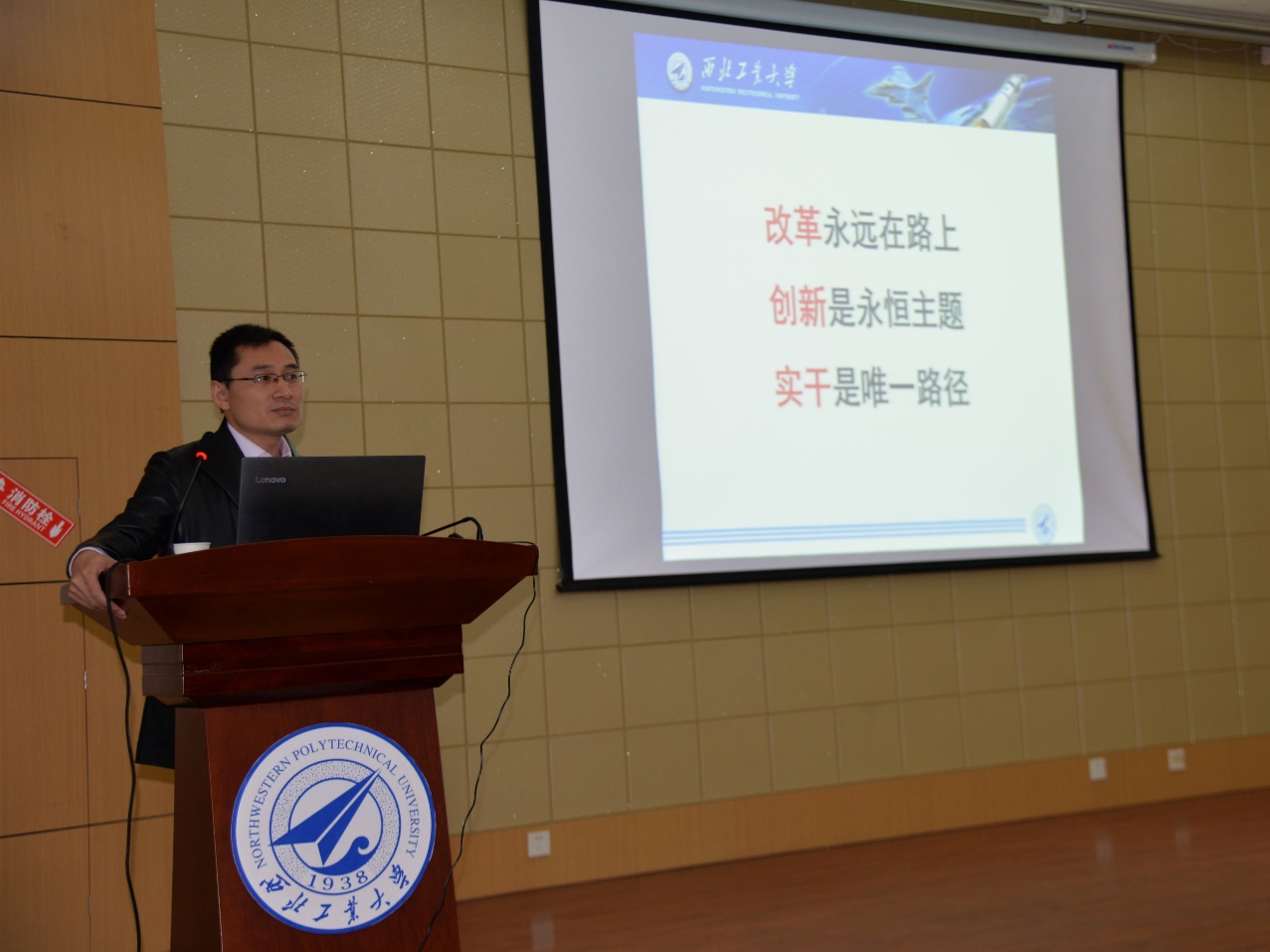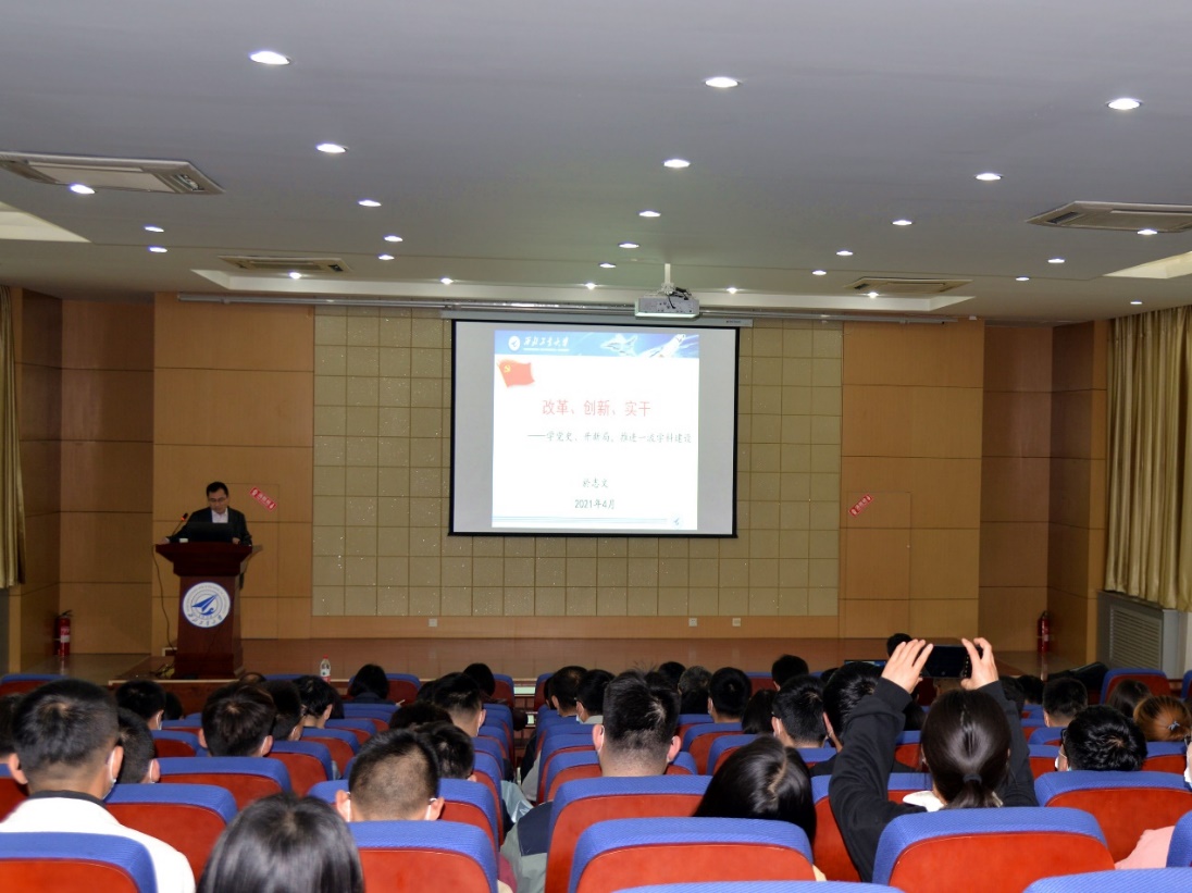 4月20日,awc777万象城娱乐官网院长於志文为学院青年教师,讲题为《改革、创新、实干——学党史、开新局,推进一流学科建设》党课。党课由院长助理郭斌主持。