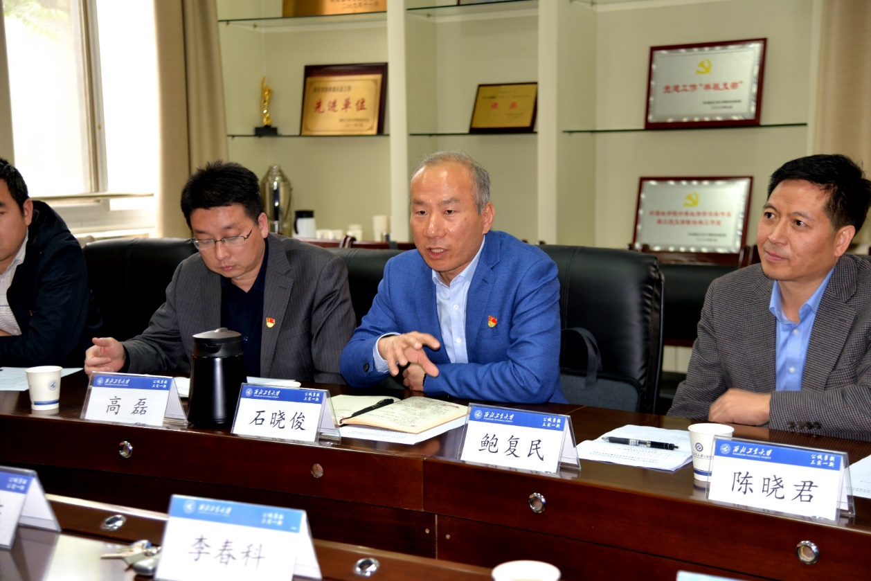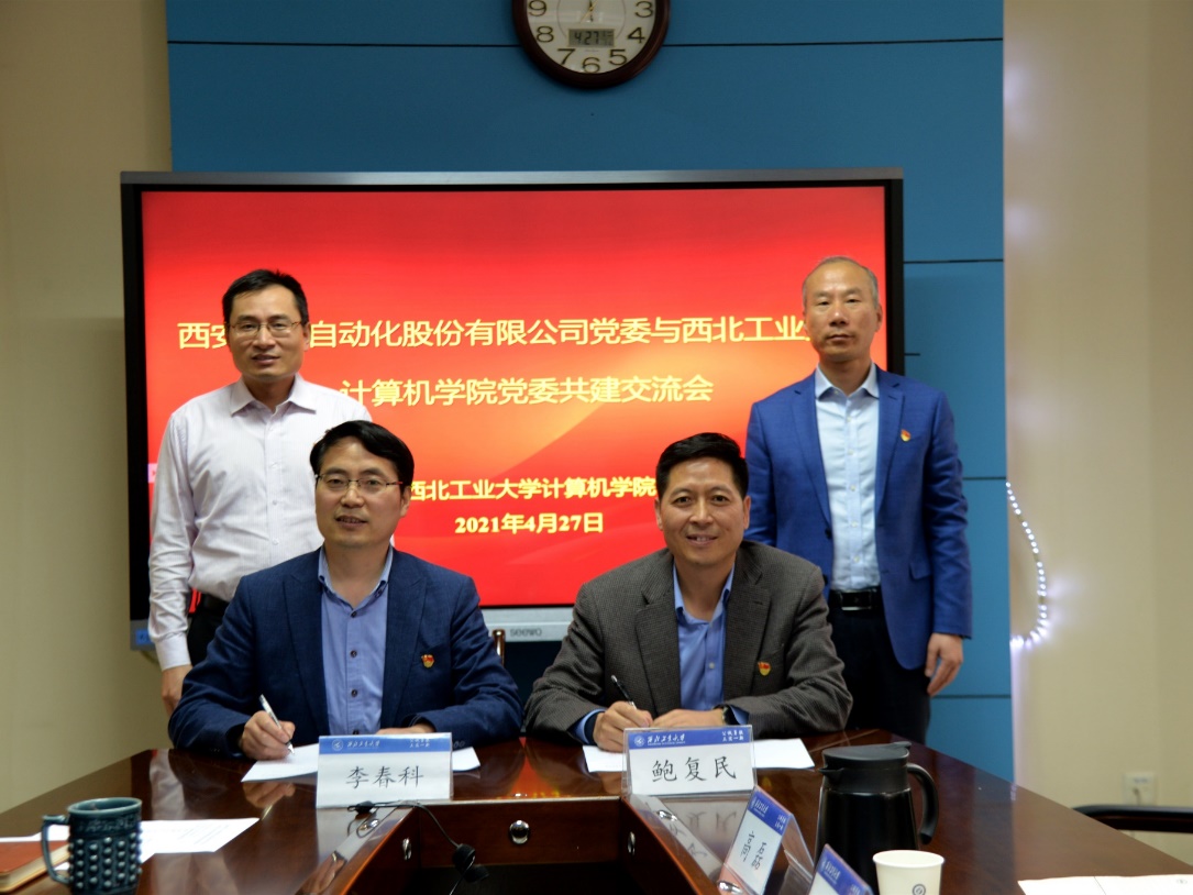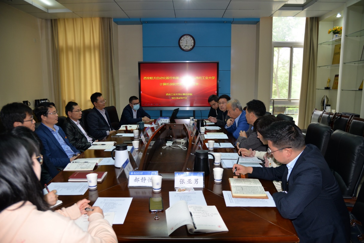 会上,李春科代表awc777万象城娱乐官网对航天自动化股份有限公司一行的到来表示热烈的欢迎和衷心的感谢,他就双方结对党建共建提出设想,希望积极探索构建“资源共享、优势互补、相互促进、共同提高”的校企基层党建工作新格局,并在此基础上强化校企深度合作。鲍复民希望通过此次共建,加强与学院的全方位交流与合作,创新形式,落实新时代党建要求,推动党史学习教育和校企合作向纵深延伸。