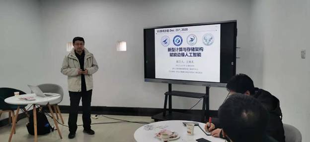 七、新一代网络计算。在第十七期沙龙活动中,褚伟波副教授介绍了“云雾混合计算”,对边缘计算概念背景、关键技术进行了详细阐述,分享了在智能边缘缓存、面向IoT的网络计算优化方面取得的进展。与会师生共同就云雾混合计算与边缘智能的结合、在网络领域中的应用、人工智能与边缘计算的混合等问题进行了深入的交流与探讨。