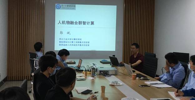 三、人机物融合智能感知计算。郭斌教授在第二期沙龙分享了“人机物融合群智计算”的概念与技术,详细阐述了其机理发现、场景自适应、分布式增强学习等科学挑战与研究内容,指出了未来研究的新趋势,并与大家探讨了原始创新的心得和追求“科学家的极致精神”的研究态度。在第八期沙龙,於志文院长应邀为大家介绍了“群智计算系统:智能计算2.0”,从群智能体的研究背景及特性、群智计算系统的研究现状、科学挑战及研究内容等几个方面进行全面剖析,提出了以“芯片、操作系统、新型算法”为一体的群智计算系统,并与参会师生探讨了群智计算系统在机器人、无人机等方面的应用前景。之后,王柱副教授在第十二期活动中以“无线感知新范式-从理想到现实”为题,介绍了无线感知的基本原理、感知机制、以及团队在动静检测、身份识别和呼吸检测方面的最新进展与成果,与大家就无线信号的接收、处理和信息融合等内容进行交流探讨。