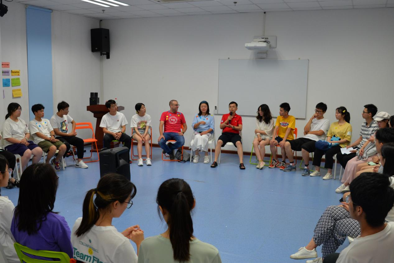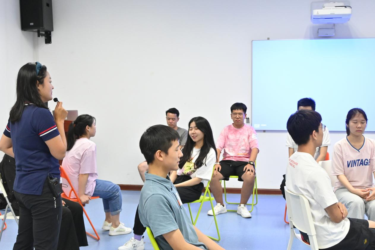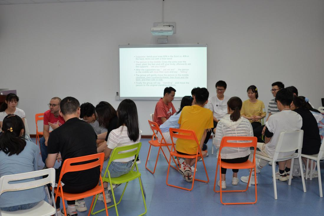 6月21日上午,学员们于室内进行了me too、train wreck、trust circle、group discussion等团队建设活动。下午前往云天苑操场进行了jump in jump out、船长来了、雪橇战队、智慧司机、救生船、互相欣赏等活动。盛夏的艳阳高挂天际,带给学员们的温度却不及大家心中的热情,户外的阔大带给众人的不只是空间上的舒展,更是精神上的放松。学员们都显得格外兴奋,欢笑和热情洋溢在大家的所到之处。