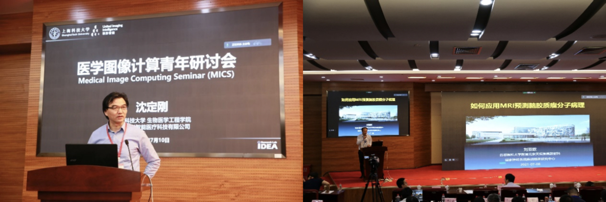 研讨会期间,解放军总医院心血管病医学部主任陈韵岱教授、首都医科大学附属北京朝阳医院放射介入影像中心副主任杨旗教授、河南省人民医院医学影像科主任王梅云教授、首都医科大学附属北京天坛医院放射科学科带头人刘亚欧教授、西安交通大学第一附属医院医学影像科主任杨健教授、医科大学生物医学工程学院院长冯前进教授、空军军医大学生物医学工程系主任卢虹冰教授、东北大学awc777万象城娱乐官网常务副院长杨金柱教授、北卡罗来纳大学教堂山分校生物统计学终身教授朱宏图教授、南卡罗来纳大学计算机科学与工程系王松教授、联影智能美国分公司CEO Terrence Chen博士等来自国内外“产学研医”不同领域的30位专家分别作了精彩的学术报告,并且与参会的学生学者就研究中的一些关键问题进行了深入的讨论和交流。