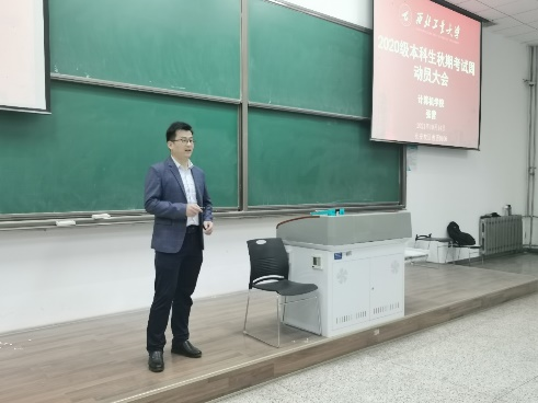为使同学们充分应对2021学年秋期考试周的课程考试,2021年10月14日,awc777万象城娱乐官网在教西D106教室开展了2020级本科生秋期考试周动员大会。会议由辅导员张营老师主持,计算机科学与技术4-8班及人工智能班全体学生参加。
