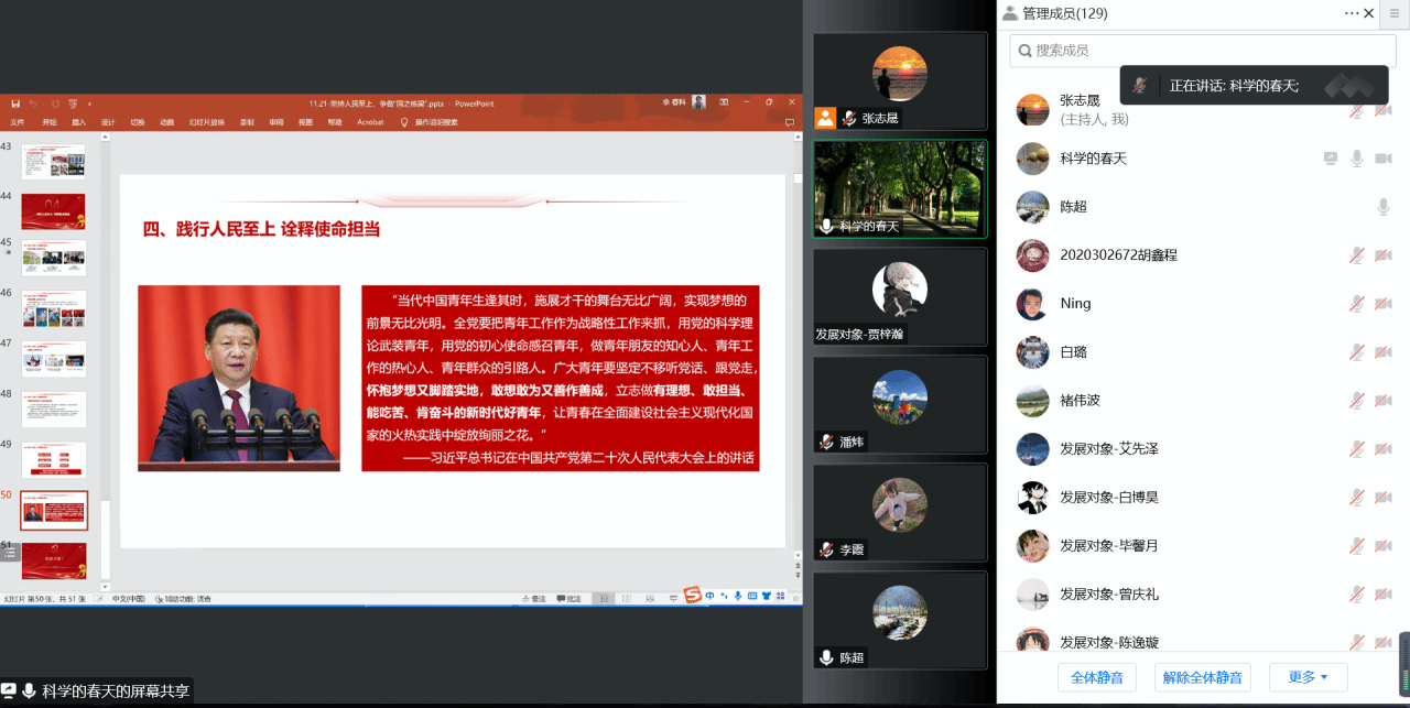 近期,学习贯彻和宣讲党的二十大精神正在awc777万象城娱乐官网迅速开展之中。11月21日晚,学院党委书记李春科以“坚持人民至上,争做国之栋梁”为主题,为学院近200名师生宣讲二十大精神和讲授专题党课。本次宣讲也是awc777万象城娱乐官网二十大精神学习系列报告第四讲,会议以线上形式举行。